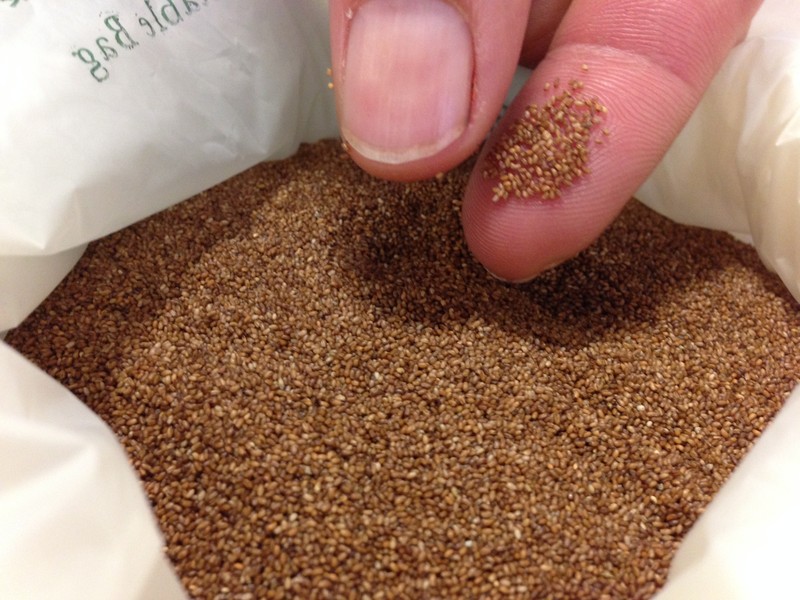 It turns out the tiny seed (less than 1 mm diameter across) has other advantages: a handful of seeds is enough to sow a large field, making the propagation easier on your wallet than corn, wheat, and other cash crops. The US National Research Council has characterized teff as having “the potential to improve nutrition, boost food security, foster rural development and support sustainable land care,” all of which are goals we share to help feed the world into the future.[4] One researcher, James Jeffrey, has dubbed teff the “next Super Grain,” because of its positive dietary attributes and robust cultivation qualities.[5]