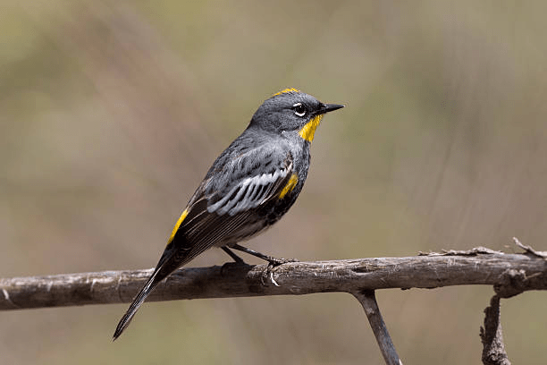 Audubon’s warbler can be found across western North America, breeding from the U.S. to Canada and wintering in Central America. It is an active bird, often seen flying between branches of trees. In the summer the males have a distinctive yellow throat and a dark head and back.[1]
