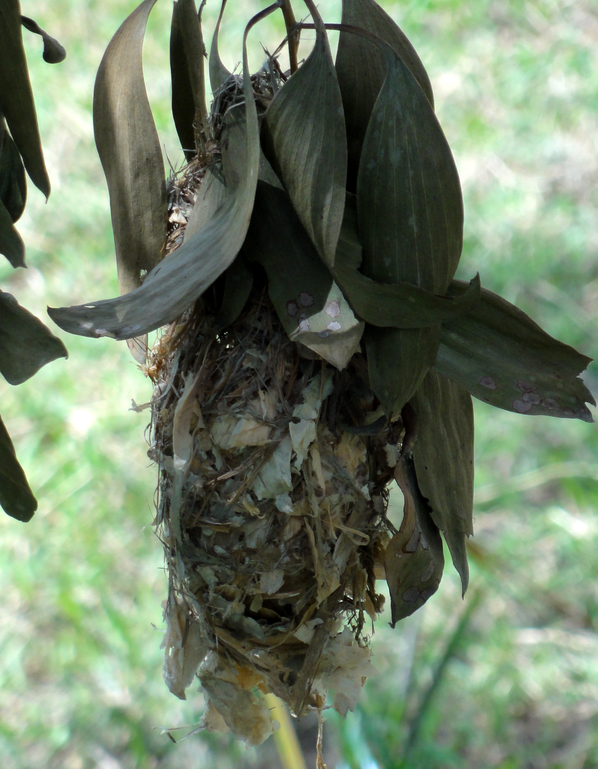 The nesting figbird is something to see! When the male gets flustered, or excited, its eye patch turns bright, bright red, which you can see in the picture to the left above. The male and female both watch the nest during incubation, but the male seems to be pretty active all day long. I could see it in the tops of the trees in the park near the Lazy Lizard, preening and showing off, while it was catching bugs to feed the nestlings. Although the nest seemed pretty flimsy, it seemed to do the trick for these birds, which we saw all over Port Douglas.
