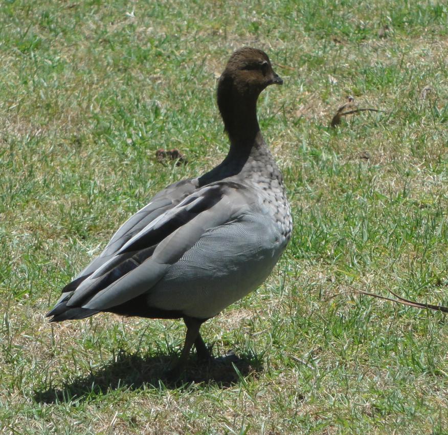 I love American Wood Ducks! Of all of the American ducks, I feel that they are the most colorful and beautiful, especially among the small, tree nesting ones. The wood ducks of Australia are another matter, indeed. They are much less colorful, quite bold, and more ubiquitous. We followed a pair in the Sydney Botanical Gardens for about 100 meters, and they seemed quite content to waddle along ignoring the Sunday crowd.