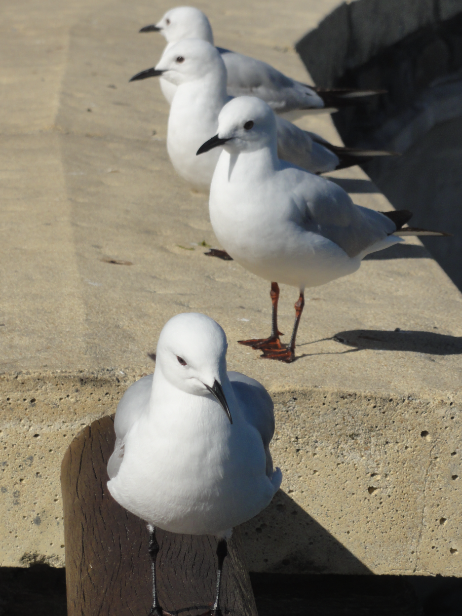 We saw these big birds in Dunedin Harbour as they cruised along, but we did not know exactly how large they were until our daughter, Eleanor, was attacked by one (or “nipped at” with its sharp beak, anyway) at a Wildlife Park in Port Douglas, Australia. In New Zealand we did not see them diving for food, but cruising. Even on the windiest of days, they are able to float just inches above the water line and sail along for hundreds of yards, without moving a feather. They make it seem effortless.