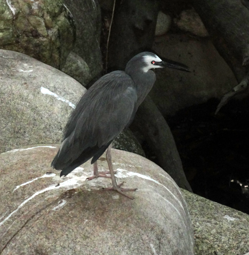 This is by far the biggest pigeon I have ever seen. It is the size of a grouse, but fatter! I doubt it could be used as a carrier pigeon. I spotted this one (left) in Queenstown, while it was munching away at the flowers and fruit on the city park trees. It also made a soft coo call. I got another look at this bird up close and personal at the Kiwi Park, which highlighted the bird’s red-orange eyes, which I did not see clearly “in the wild” of the city park. This is a special bird of the Maori, and it is only found in New Zealand. The native people gave it the name of Kereru, which is sometimes translated as Wood Pigeon, but it is from a different species. The NZ species, once very numerous, is protected, probably because it would be easy to track and hunt to extinction.