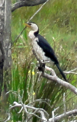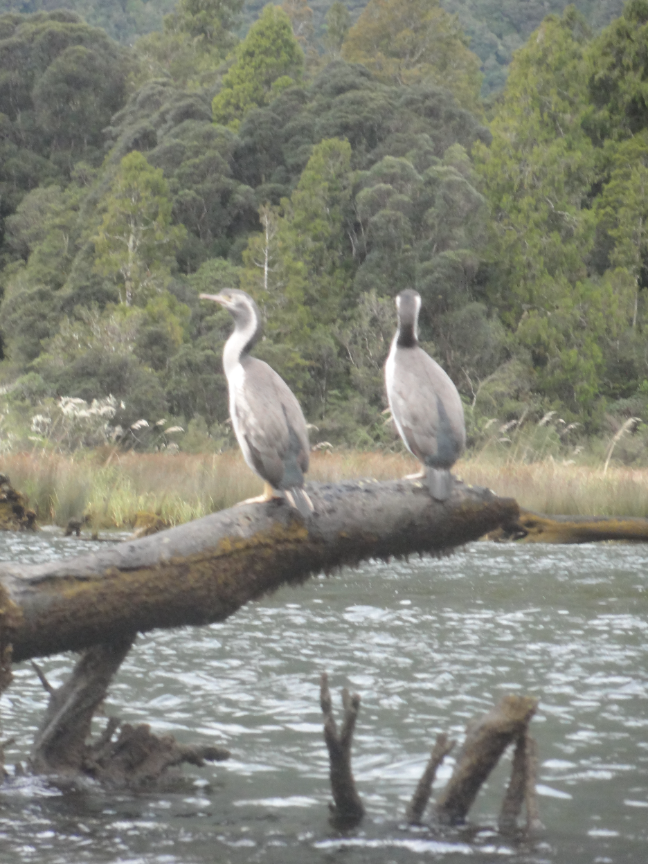 We saw the shags, which is what New Zealanders call cormorants, in Auckland and again in Dunedin Harbour, but the ones most vivid for me were on the log in the middle of the channel of Milford Sound. They looked like twin sentinels, as we went by in our kayaks. I did not get a great shot, but I recognized them because of their yellow beaks and white fronts and necks. Their backs ranged from grey to black. We saw black shags in Dunedin Harbour, as well as little shags and I thought we saw an Anhinga, but I must have been mistaken.
