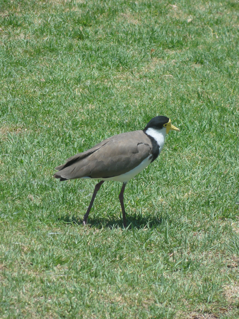 I spotted a pair of these birds in a field, as we were driving away from Queenstown and towards Dunedin. Little did I know that I would see many, many more of these plovers over the course of the next few weeks. They were ubiquitous in New Zealand and Australia and fun to watch, as they slowly walked along, in city parks, and quiet fields, in search of insects to eat. I never saw the aggressive spurs protruding from their wings.