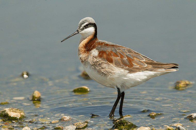 Wilson’s Phalarope wading in a pond.