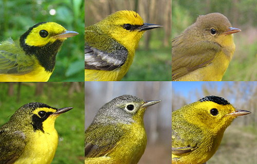 What do you call that bright yellow bird with the olive back, black-black eyes, and black hat? A Yellow Warbler, right? Not exactly. It sure is cute as it sings and eats tiny insects right in front of your eyes.