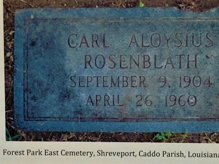 The stories of Uncle Carl also fall into that category of posthumous retelling of his demise, rather than extolling his life. Carl Aloysius Rosenblath was born on September 6, 1904, in Shreveport (Caddo Parish) Louisiana. He attended St. John’s High School and graduated from Shreveport High School, remaining a life-long member of St. Joseph’s Catholic Church. He grew up in a large Catholic family and made his way after school through several jobs and career shifts before settling into real estate. His first real job was serving as the manager of an oil warehouse in Big Rock (Pulaski), Arkansas.