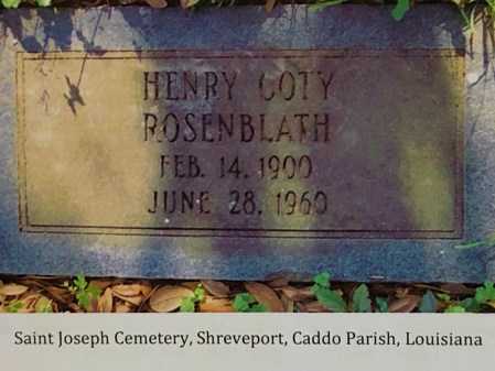 In Coty’s obituary in the Shreveport Times, the papers reported again that his brother, Carl, had died in April while testifying in a civil case in Caddo Parish District Court (tough legacy to uphold). When you pass to the next life with an unusual demise, it is hard to shake the stories, especially when your brother gets mention for his death twice, in his own obituary and yours. Seems like a long line of strange demises in the Rosenblath line.
