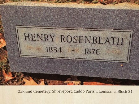 The next time that the name Rosenblath appears in the public records is when he and Gertrude moved to Shreveport, Louisiana. To this day the family does not know what took the couple from New York to Louisiana, but lots of rumors float about: escape, employment, adventure … No one knows for sure. The couple had four children and appeared in the US census on June 4, 1870, as residing in Caddo Parish, Louisiana.