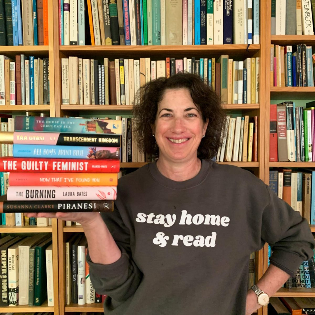 Lori Lieberman hands out free books for the teachers. Romance novels, dystopian fiction, text books. They’re all yours.