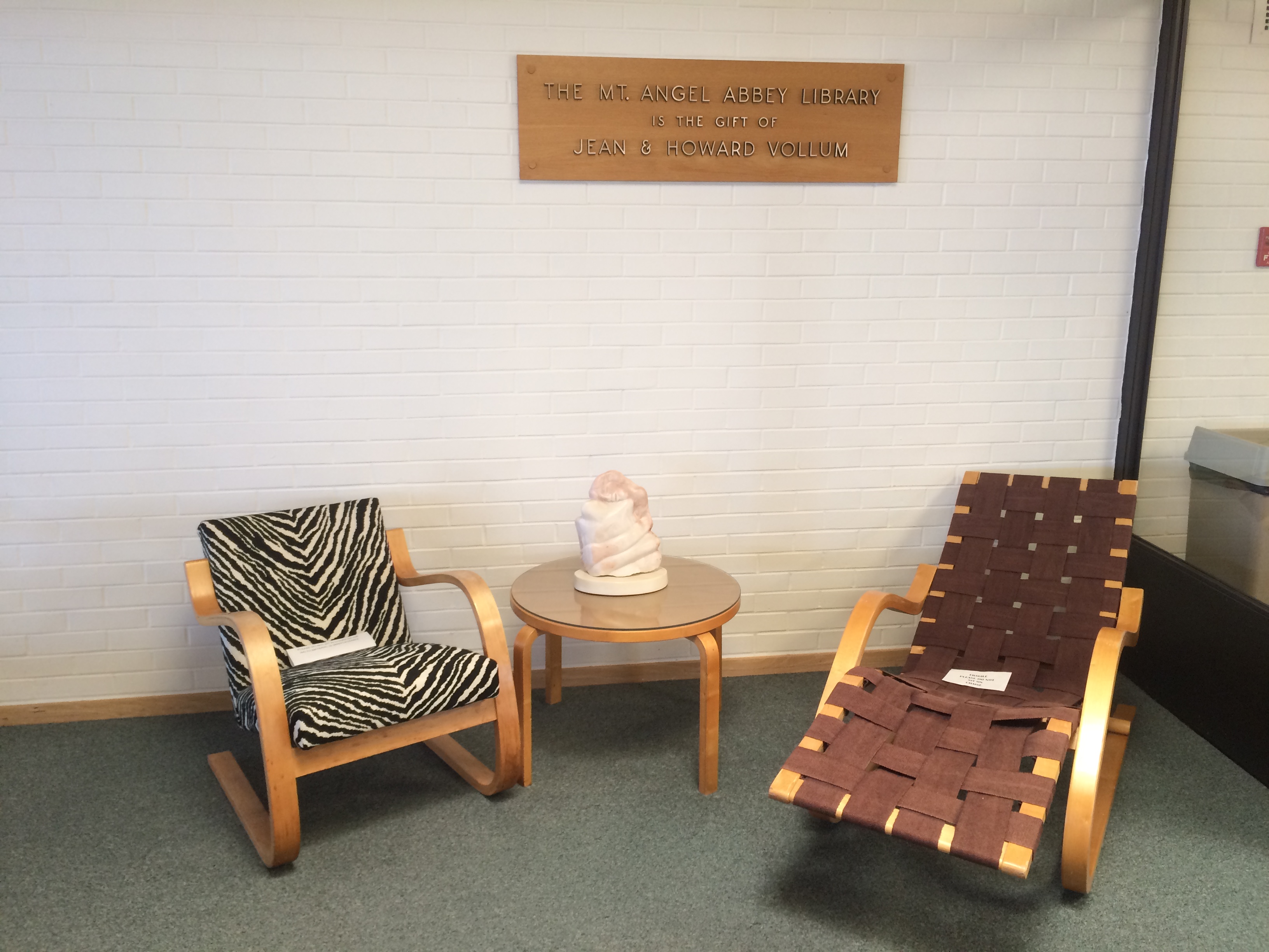It seems most plausible that Aalto liked the project, then looked up its geographic proximity to his old friend, Vernon DeMars. Aalto then made the proposal with the intention of giving the construction work to the DeMars firm. Perhaps the official story is believable after all. In any case, Aalto never accepted his stipend. He took the honorarium money and gave it back to the Abbey Library in the form of his signature furniture designs: lamps, tables, desks, chairs, stools, vases and a tea trolley.[7] Quite a legacy to have in Oregon!