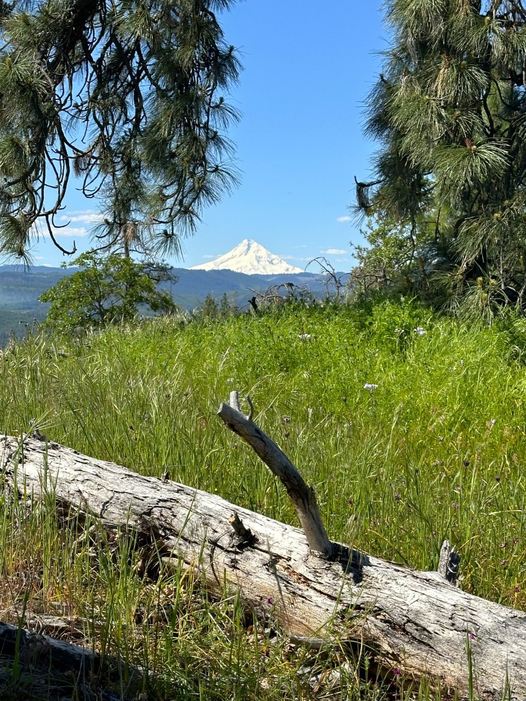 Mount Hood (also known as Wy’east) framed by pine trees and oaks