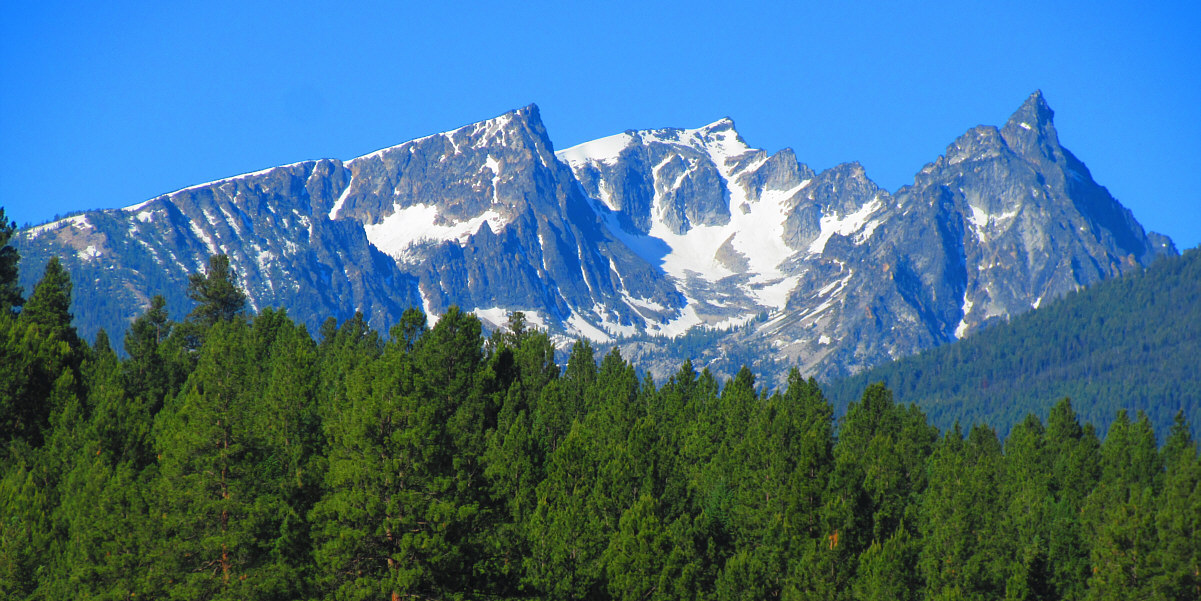 The Bitterroot Mountains are bordered on the north by Lolo Creek, to the northeast by the Clark Fork, named for William Clark, on the south by the Salmon River, on the east by the Bitterroot River and Valley, and on the west by the Selway and Lochsa Rivers. Its highest summit in the mountains is Trapper Peak, at 10,157 feet (3,096 meters).[2]