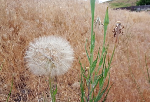 The plant opens its flowerhead in the morning and closes up before the heat of the day, hence some of its nicknames. We spotted lots of them flowering and going to seed on the Flagstaff Trail outside of Boulder this summer (2019) and the blooms ranged in color from yellow to pink and the globes from white to brown to gray, as they were going to seed. The seeds seem hardier than dandelions, as they were not immediately crushed by the pelting rain and hail. The globes seem to last for weeks, before the perfect wind arrives to send the seeds aloft.