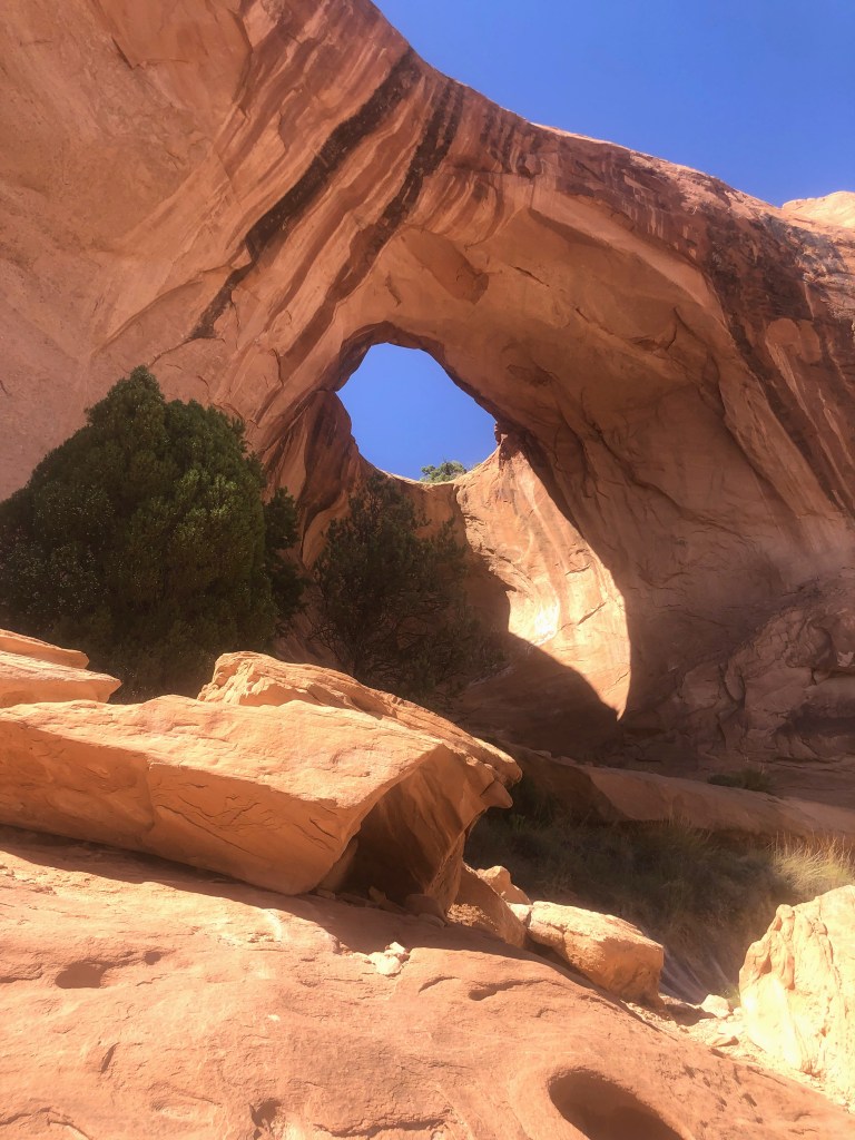 “Where can we go between now (noon and 4:00pm)?” we asked. He gave us a list of great hikes to see the other natural bridges and arches located just outside the Park boundaries. Off we went, dropping our bags in the room and setting off to see the redrock wonderland.