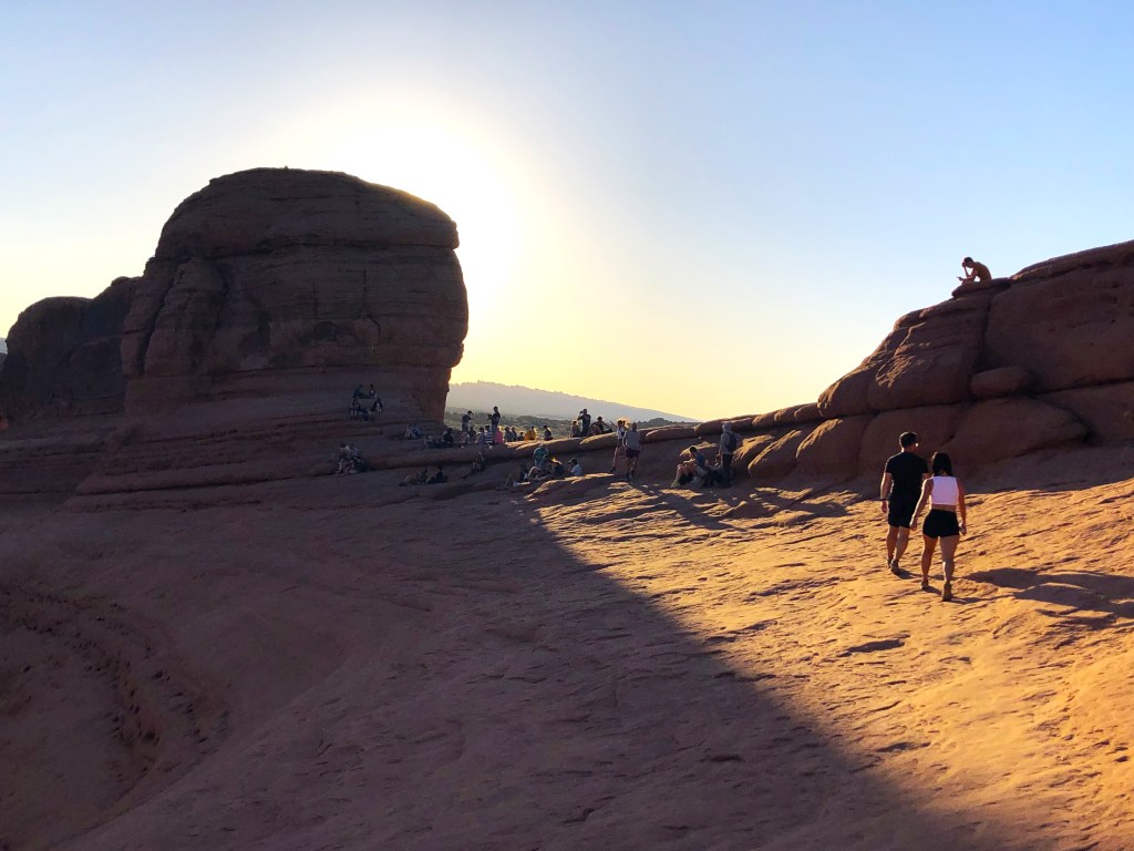 Today we wanted to see Delicate Arch before the sunset over the horizon. So off we ran, literally, to the places we thought we could get the best view. We guessed the wrong spot and walked for about 45 minutes up a steep embankment only to see Delicate Arch about a mile away on the hillside.