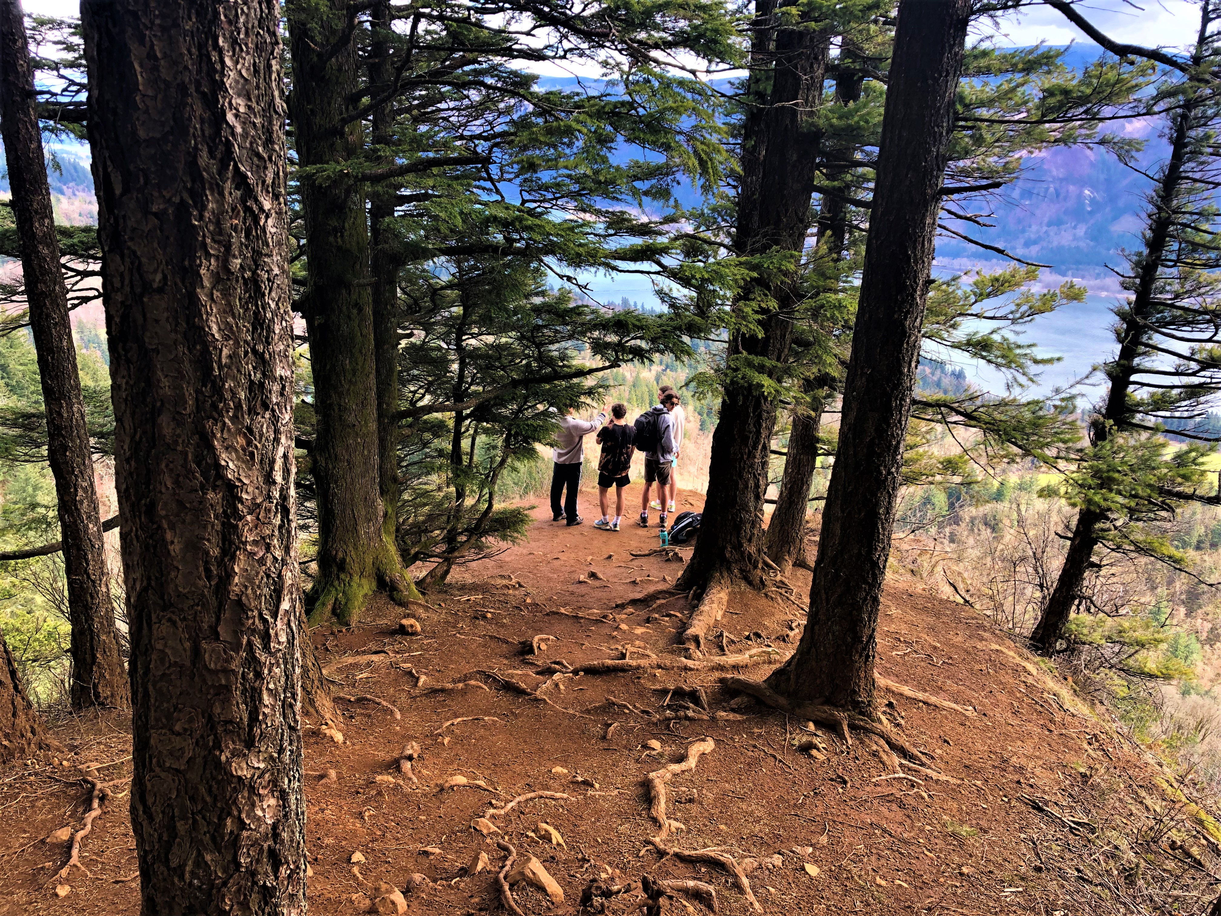 From there the trail ascends about .2 miles up several steep switchbacks, then traverses west and south past scenic views of Hamilton Mountain, Beacon Rock and the Gorge. We took in views from a short spur trail to Pioneer Point (with the Tipping Tree) with views to the southwest that include Angel’s Rest and Devil’s Rest. Students from Lakeridge High School were in front of us for most of the ascent and they took pictures on a new Polaroid which seem both retro and current.