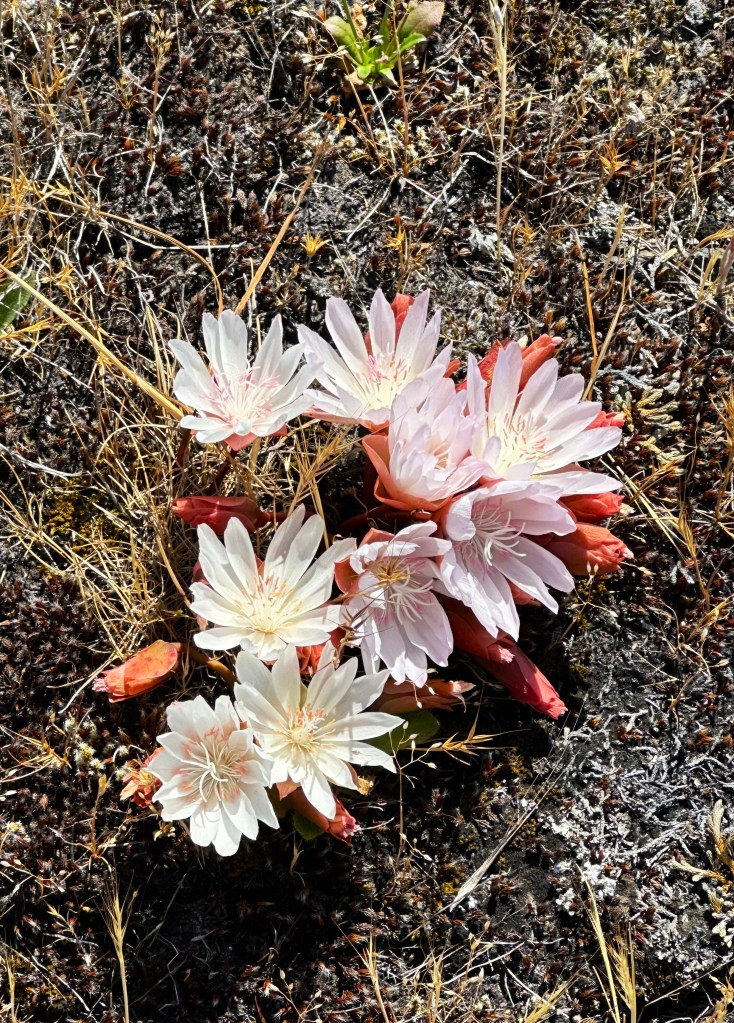 Pass through more green seeps, and then veer away from the rimrock towards a boggy expanse that is lit up by yellow monkey flower in the spring. Bitterroot blooms on the exposed rock, and there’s a vernal pool that issues from a bubbling spring here (The pool dries up by early May). The trail joins FR 015 and comes to the unsigned Rowland Wall-Bitterroot Trail Junction to close the loop. Make a right on the road bed to return to the trailhead.