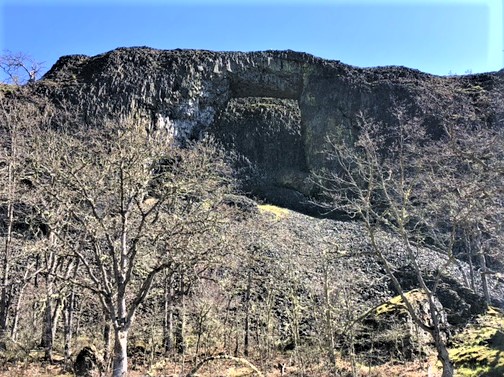 The Arch is directly in view of all hikers on the loop trail, but many pass right by it, not noticing the indentation in the basalt cliffs and the cut out arch. The area is cordoned off to climbers and pedestrians, to preserve the area and maintain the beauty of the arch itself. If hikers and bikers take a slight left past the arch, they can connect with the Old Atwood Road, which is a popular mountain biking and trail running route in the meadows.