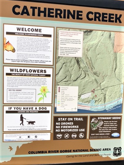 Spring wildflowers are nothing short of magical and miraculous in the Columbia River Gorge. One of the premier areas for early wildflower viewing is the Catherine Creek Recreation Area in Southwest Washington. The most popular trails are south-facing, so their slopes get lots of sun by mid-summer, so the flowers get dry as tinder. Their are several approaches to the trailhead and early birds find open parking spots on weekends just north of Old Highway 8. The trails are shared spaces for bikers, hikers, and the occasional horse riders.