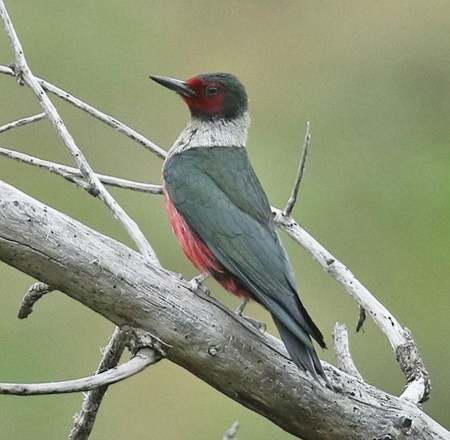 Across Washington Highway 14 from the main part of Columbia Hills State Park, stands Horsethief Butte which dominates the skyline, as if guarding over Horsethief Lake like an ancient castle. The lake itself is enormous, flooded into existence by the construction of The Dalles Dam. Lupine and balsamroot bloom in mid-April, making spectacular fields of blue and gold. Songbirds fly about — like meadowlarks and woodpeckers, while larger birds of prey — like bald eagles and falcons, soar on air currents high above hikers/bikers heads. [1] We spotted a mature bald eagle with a salmon in its talons drag the fish up onto the nearby cliffs to get positioned to carry it to its nest. We even spotted a Lewis’s Woodpecker with its bright pink belly, red face and grey collar. Its iridescent green back almost appears black. Named after Meriwether Lewis, it was a fun one to watch jumping on the basalt. [2]