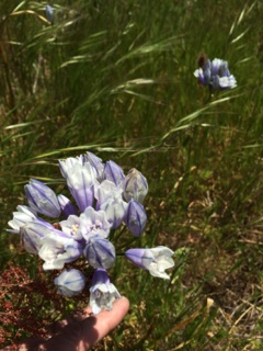 Since it was a Monday mid-morning in May, the Trailhead on Courtney Creek was nearly empty. Only a few intrepid runners were on the trail when we got there and we spotted only three other hikers on the trail all afternoon. The weather in Portland had called for showers, but we were blessed with crystal clear skies and only some cloud cover over the Cascades to the West. We hiked on mountain bike trails and jeep ruts most of the way, winding along a path on the eastern slope of the Wall with outstanding views toward the Columbia River and Eastern Oregon and Washington.