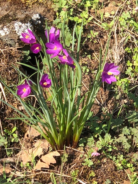 Along the way we heard the calls of flickers and meadowlarks in the brush and we spotted a vast array of purple wild flowers basking in the sunlight: mostly grass widows and gorge parsley.