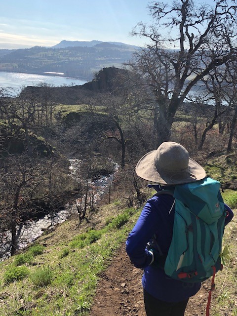 We tried to find the descent on a trail known as “Little Maui,” which we missed completely. The trail was supposed to fall in the middle of the Coyote Wall Syncline, but we did not spot it in time to make the traverse. Instead we headed toward the River and took the trail east to the trailhead where we started. The entire loop was about 8 miles and with some quiet time for each of us, it is one of the best early spring trips we have taken in the Gorge.