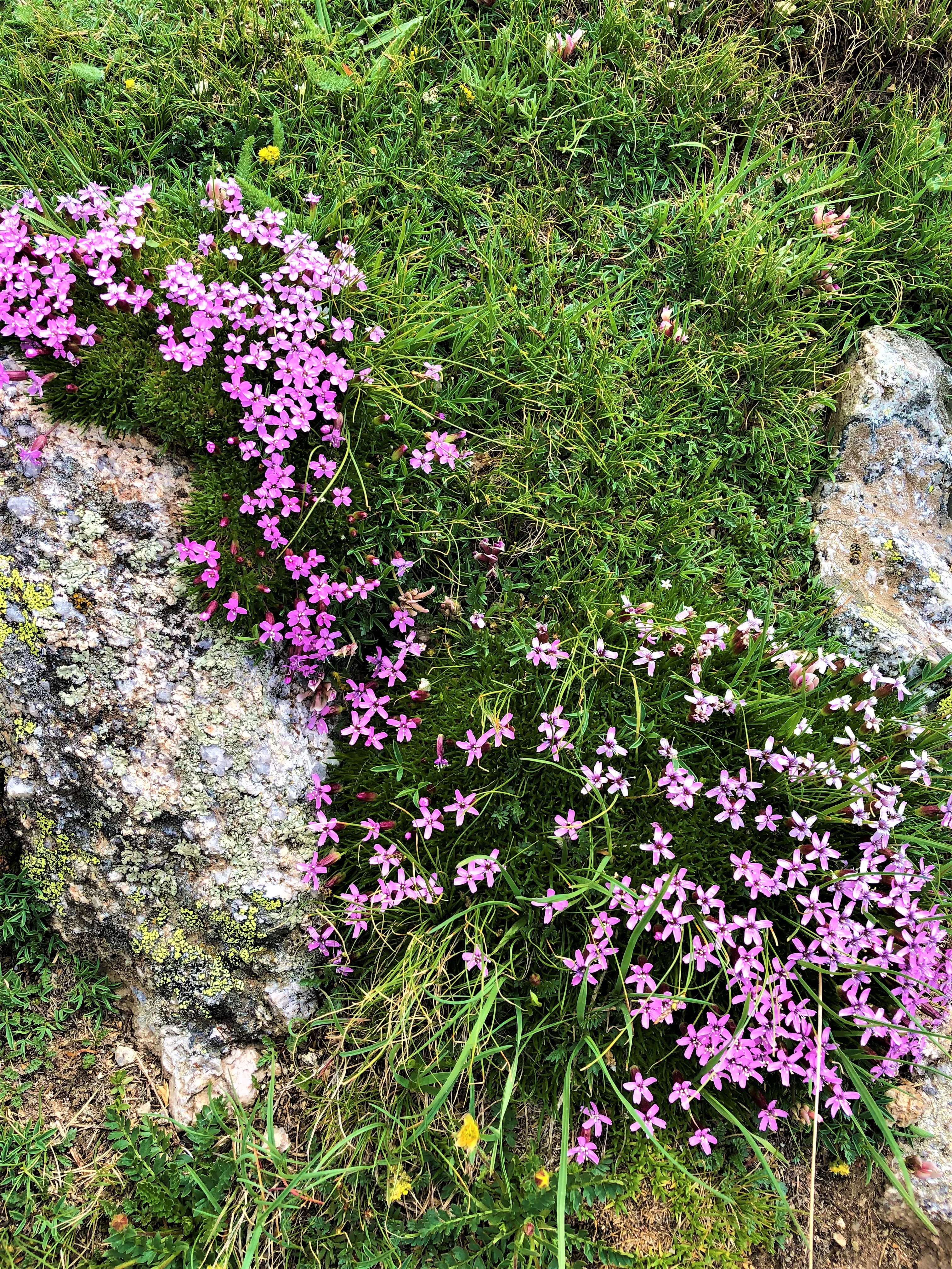 Heading up and down the mountain, we saw lots of marmots and pikas. The marmots were all sizes, with some the size of a small dog. The pikas, in the rabbit family, are the size of a large bunny. The sounds that they made accompanied us all the way up and down the rocky areas above timberline. Kathleen counted over 50 marmots on the descent, which was fun, as they came out in full families as the sun started to set. By 5:30, it was a full chorus of animals who reign in the rocks!
