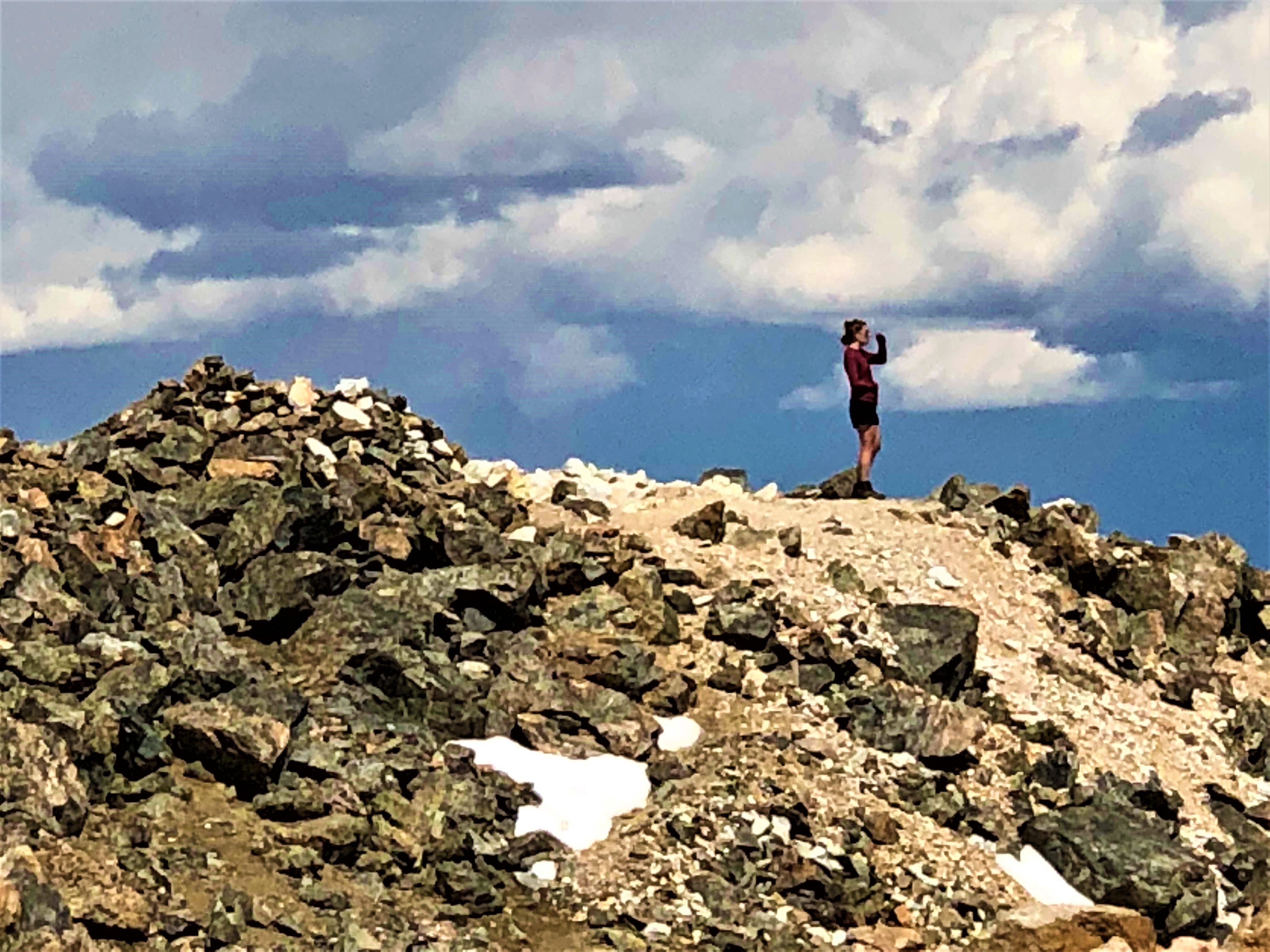 We had a beautiful perch out of the wind and with a magnificent view to the north and east of the the peak. Instantaneously Kathleen and Eleanor started to sing Nederland, a song they sang every time they peaked a mountain while at Cheley Colorado Camps in Estes Park. They cried with joy after the song and we had a chance to stop and take stock of our gratitude in being here, climbing peaks and experiencing the wildness of life. It was beautiful and rewarding to take stock of our blessings.