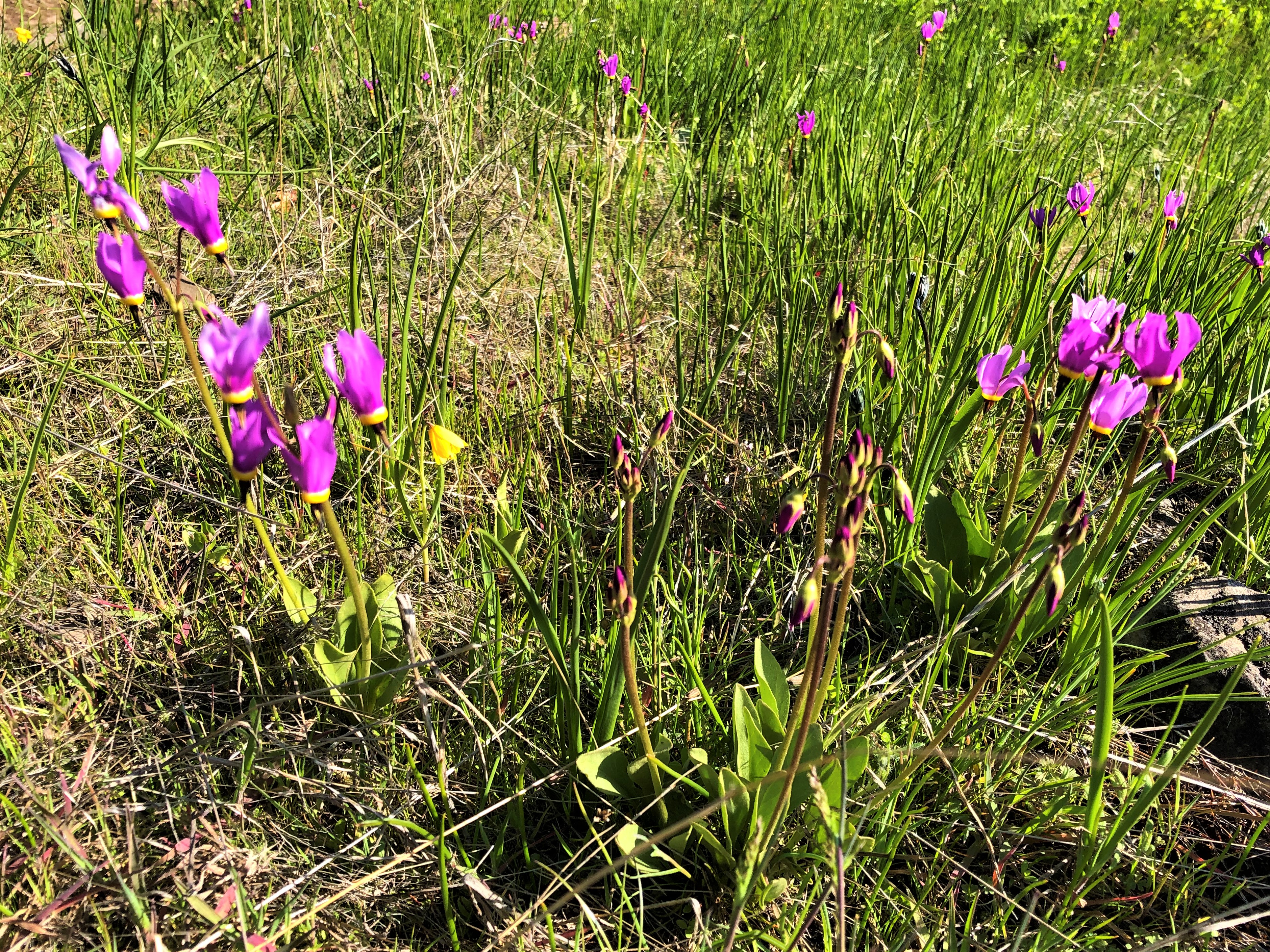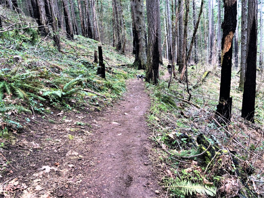 The spring flowers were visible, along with the mosses, Oregon Grape, and ferns. Not even a forest fire can keep these plants from flourishing.