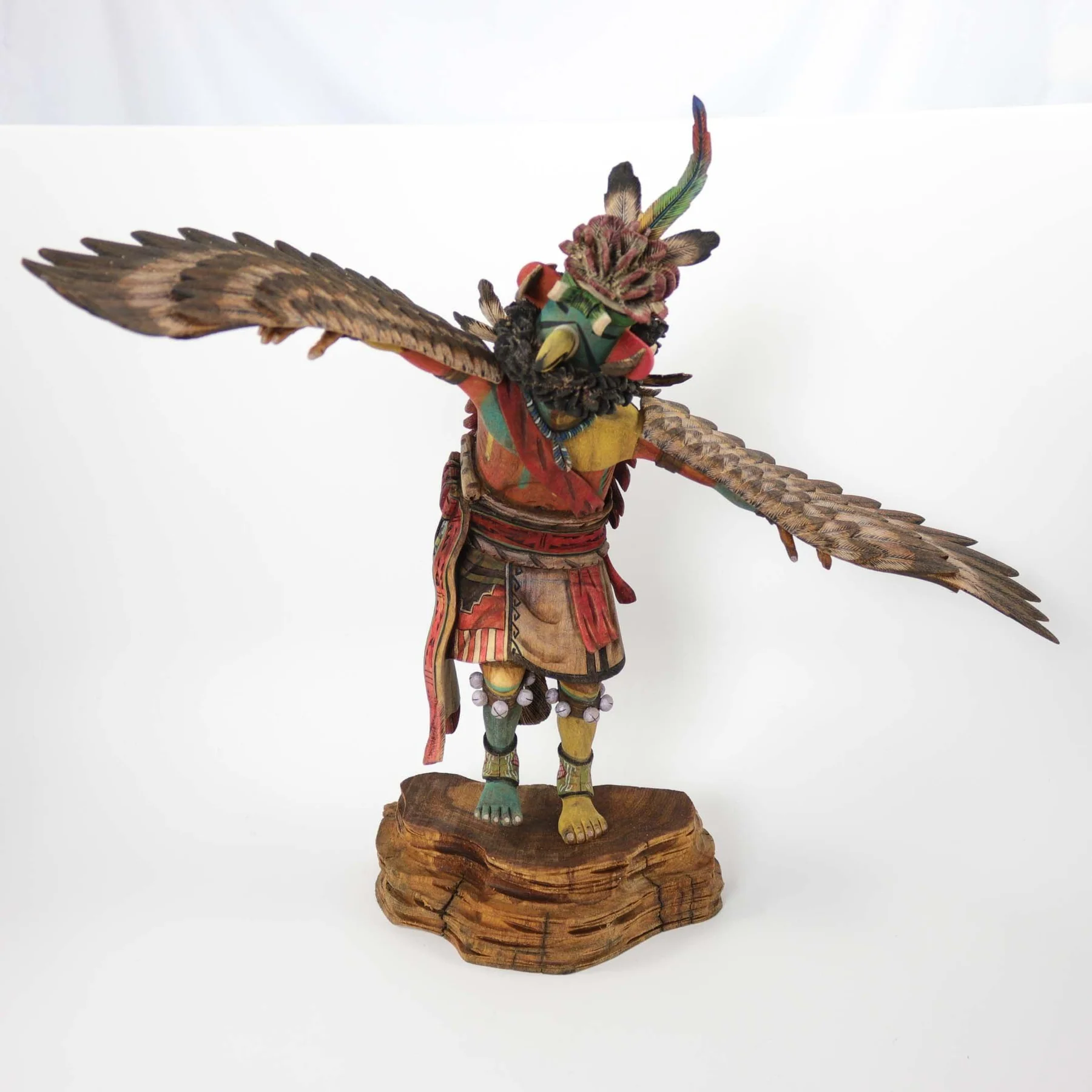 Kwahu, the Eagle Kachina, appears most often with Mudheads in the Kiva or Repeat Dances of early March. The dances are a conscious effort to duplicate the actions and motions of eagles and are a prayer for an increase of eagles.