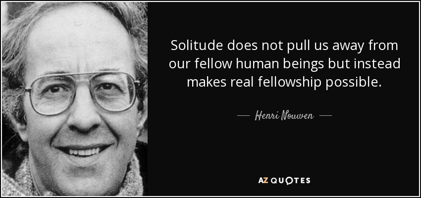 In the solitude we can slowly unmask the illusion of our possessiveness and discover in the center of our own self, that we are, not what we can conquer, but what is given to us. In solitude we can listen to the voice of him who spoke to us before we could speak a word, who healed us before we could make any gesture to help, who set us free long before we could free others, and who loved long before we could give love to anyone. It is in this solitude that we discover that being is more important than having and that I am worth more than the result of my efforts. In solitude I discovered that my life is not a possession to be defended, but a gift to be shared, and there I recognize that the healing words I speak are not just my own, but given to me, that the love I can express is part of the greater love and that the new life I bring forth is not a property to cling to but a gift to be received.