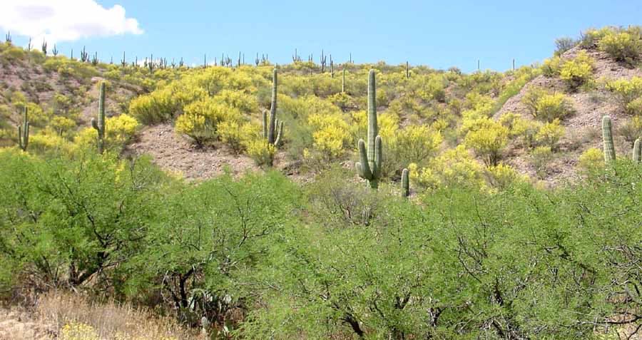 The Sonoran Plains Zones, as the name implies, are relatively flat. Clay soils are the rule. Rainfall is scant. These harsh conditions have restricted the native vegetation throughout this zone to species which can tolerate long periods of drought, and thrive on sunshine with the heat in summer and cold in winter. Originally native grasses covered these zones with a fairly tight sod, broken by windblown patches and cut by streams. Live, all-season streams are plentiful on land West of the Continental Divide (think of the Columbia, Sacramento and Colorado Rivers), while they are few and far between East of the Continental Divide (Missouri, Red and Rio Grande Rivers). Trees on many streams, except for the alder, willow and cottonwoods, were absent on the Eastern slopes.
