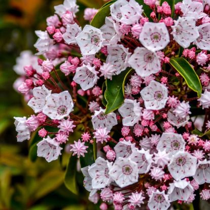 In the early Spring, this low plant of boggy spots often covers large areas of the rocky slopes. Rarely more that 8 inches high, the diffusely spreading woody branches make an impenetrable carpet. Within the saucer-shaped corolla, the stamens are held back in little pouches which are released only by the expansion of the blossom or by the pressure of insects, one of nature’s ingenious ways to insure pollination at the optimum moments.