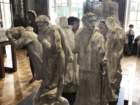 Because of the plexiglass windows, the passers-by on rue de Varenne can catch a glimpse of the Monument to the Burghers of Calais, while the sculpture of Ugolino and His Sons graces the center of the ornamental pool. Orpheus is sheltered among the trees, and the Monument to Balzac stands out against the backdrop of Les Invalides.[1]