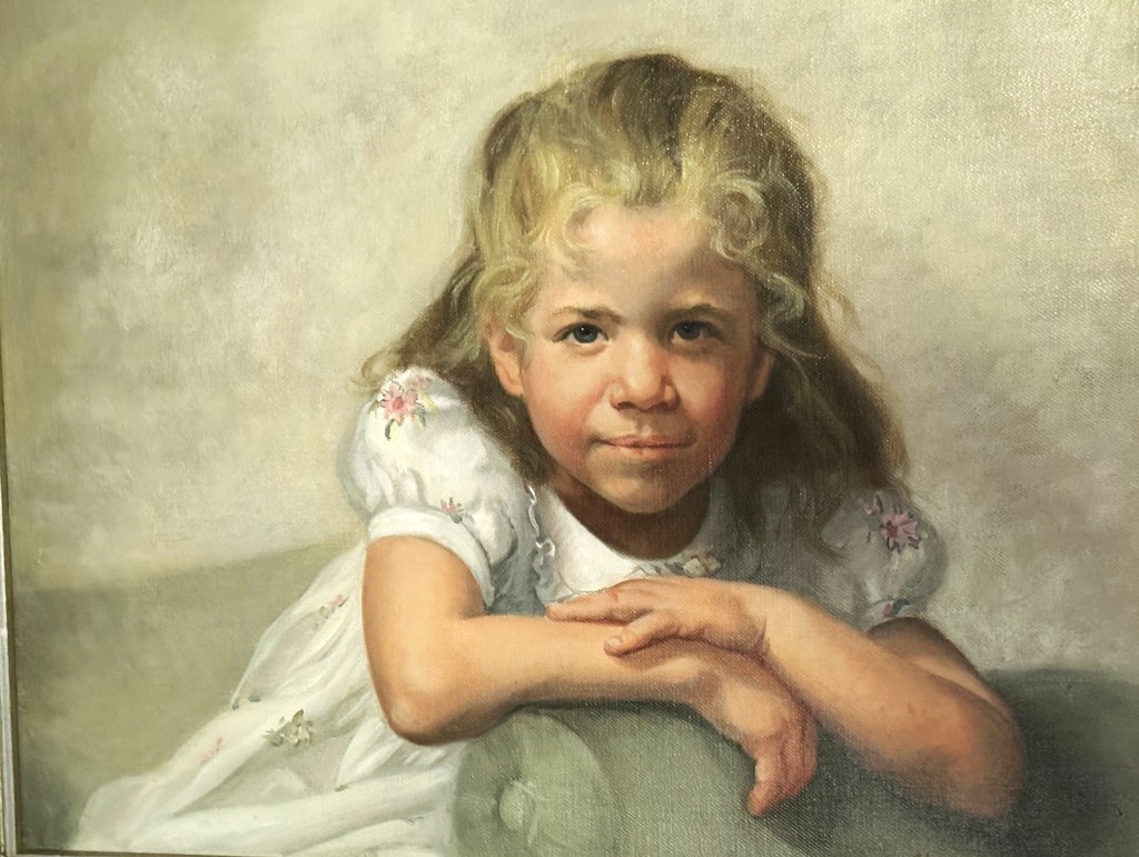 Polly even painted a acrylic painting of our daughter, Margaret Hooper, for an art show she entered this close-up. It too is a family treasure.