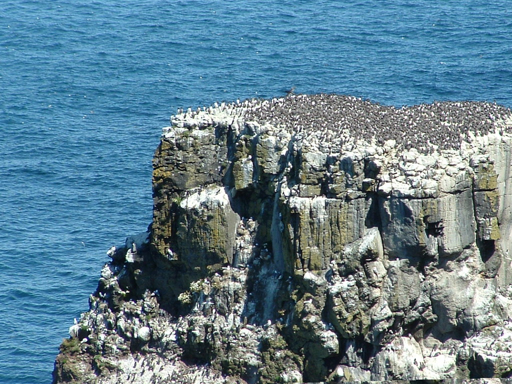 He arrived exactly on time to drive us from the Causeway Hotel to the ferry at Ballycastle. We were ready for a day-trip to Rathlin Island. Where? Rathlin Island lies about 15 miles across the Sea of Moyle in North Antrim County, Ireland. Population of Rathlin? 1,000 sheep, 500 cows and 110 residents. Why Rathlin? For the birding, of course. One problem: we are late in the season. All of the Rasorbills, Puffins, and Kittiwakes that normally nest and raise hatchlings in this remote place had already left to the summer season, all but a few of the rookeries were abandoned.