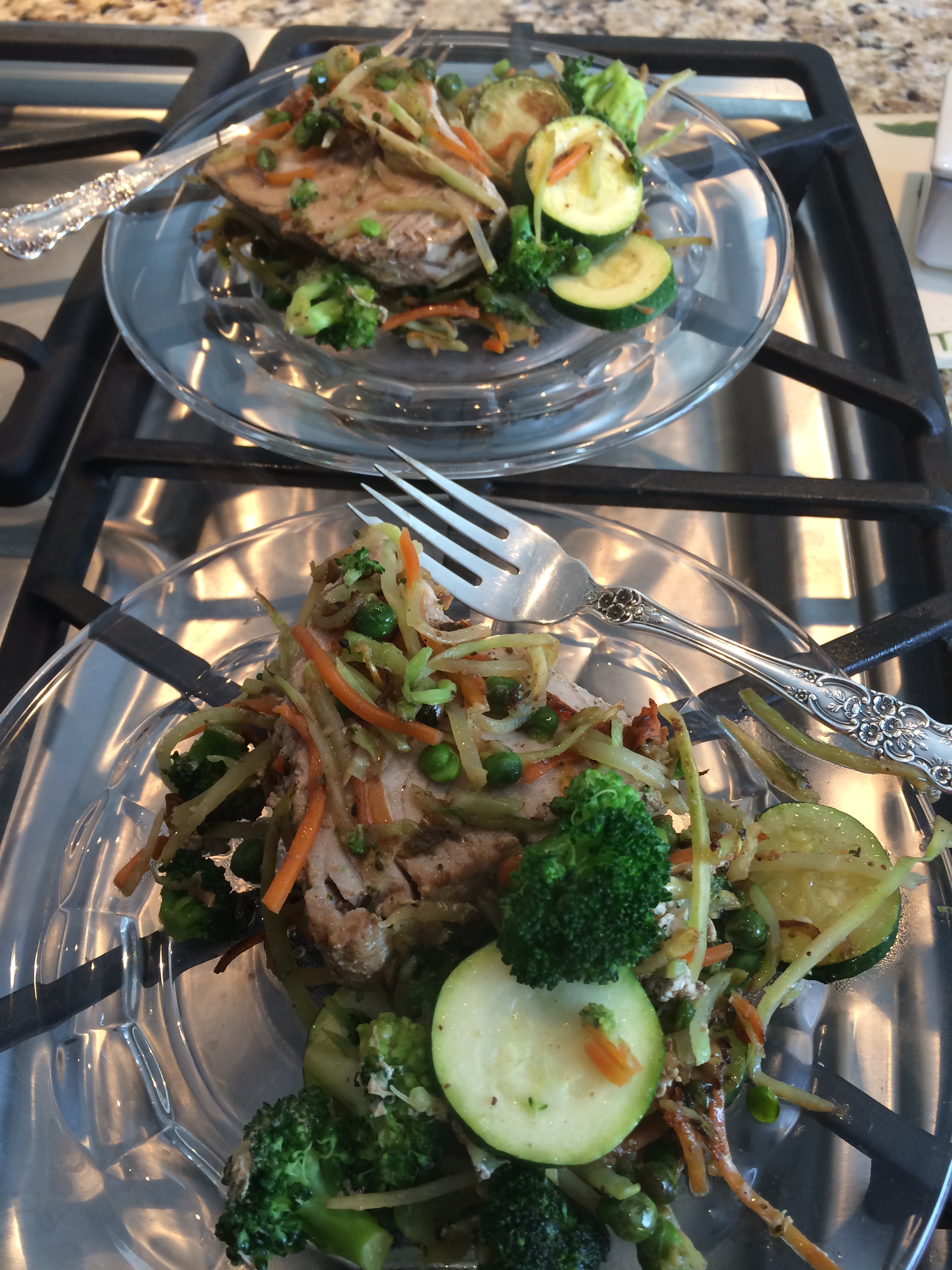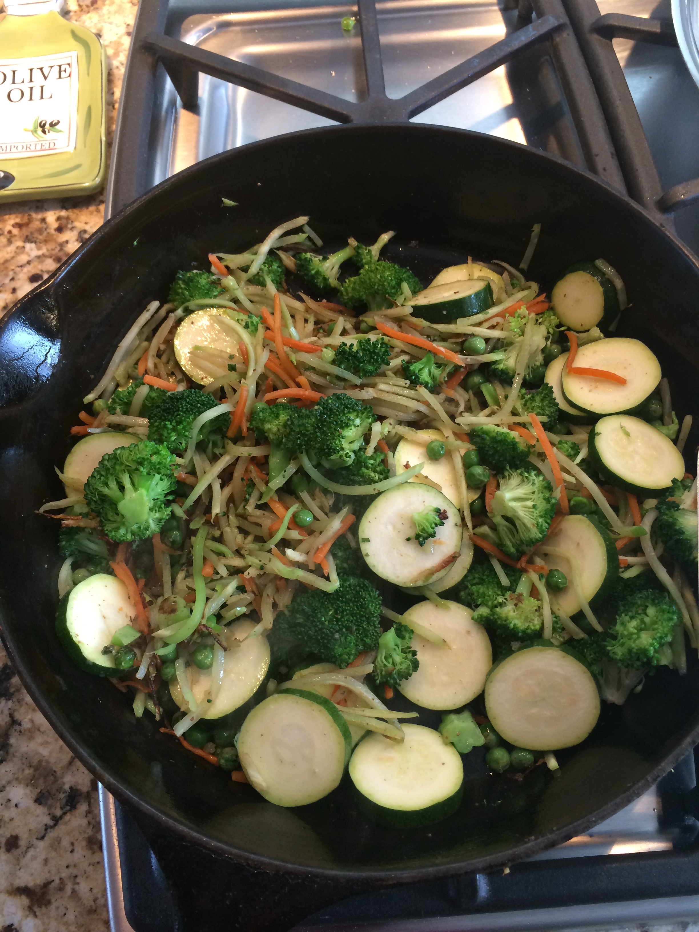 Trader Joe’s has some of the best chopped vegetables I have ever found. They are fresh and delightful in salads or just about any meal. They are particularly handy in the one skillet way.