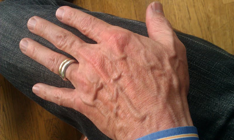 Nails clipped and trimmed, still dirty with grass stains and dark earth