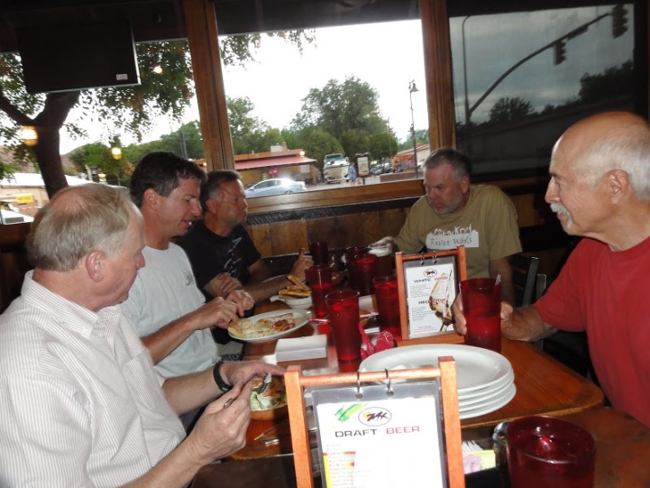 We checked into the Motel Super 8 (bikes not allowed in these classy rooms) and dropped off our bags. Zax’s Pizza & Watering Hole dinner consisted of soup, salad and made-to-order pizza. A few of us ordered pitchers of beer to wash down the local fare. Some pizza slices were better than others. We met the other members of the Green River group, paid Eric Hagquist what we owed for the trip, and met Eric’s father, Gerry. I knew that Gerry Hagquist must be a character from the e-mail he sent to us, his fellow River Rats, just before our trip: