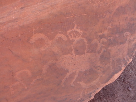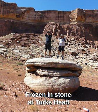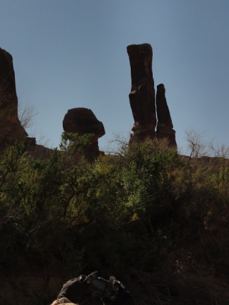 One of the hiking spots went near the river to a large monolith. On that rock were some Indian petroglyphs worth seeing and studying. We saw some other petroglyphs later near Turk’s Head. The symbols of men and bighorn sheep and shields and squiggly lines were easily identifiable, but what they actually stood for is more of a mystery.