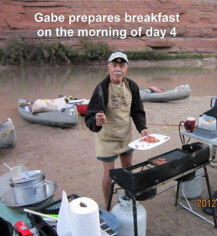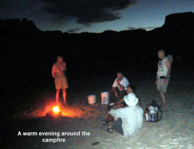 Gabe brought along a horseshoe set, which he set up in our campsite the second night, located at Bonita Bend. It was good to dry the sweat, bath off the day, and relax right after dinner. Then there are the stories: Gerry Alkema, Scott Soper, and Steve Luhrs were filling in the “dead spots”, which were not very often, with another SJSU story that got huge laughs at the retelling.