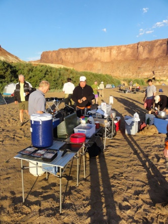 The sun was mighty strong during the day, so we covered our heads, legs, and arms with hats and sun screen. The nights were cool, so it was also good to have a jacket along for the trip. Our lunch stops aimed for several aspects: shade, enough sand to set up a table, and enough bottom to avoid steep river bank climbs.