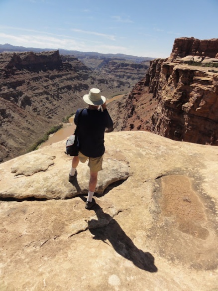 Eric Hagquist gave all of us the appropriate disclaimers about the Water Canyon hike: 1) it is steep; 2) it is hard to climb; 3) once past the canyon, the trail can be hard to find; 4) bring lots of water; and 5) did I say it was steep? How steep you ask? Apparently, once you climb up the narrow ravine, it rises nearly 1,000 feet in one quarter mile. What Eric forgot to tell us was how beautiful the view was of the Green River, once on the mesa top. We were not sure if we could see the Confluence of the Green and the Colorado from the top, but some of us were willing to try.