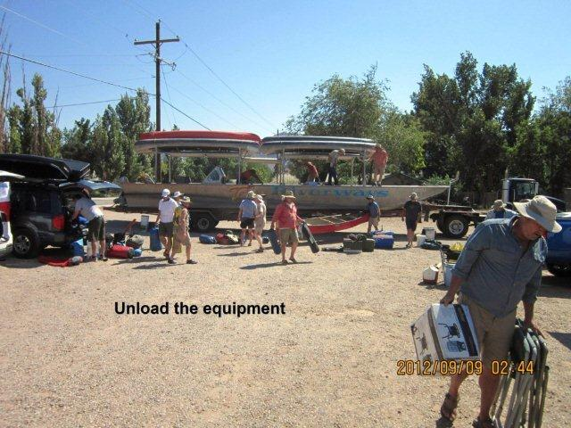 In many parts of the Rio Grande, San Juan, and Colorado River basins the tamarisk are dead or dying. The leaf beetles have had an amazing ability to eat into the bark and kill the plant. It is only a matter of time before the dead trees wash down river. The new shoots are all over the Bottoms, but they too, will eventually die due to the beetles and only the native cottonwood, willows and pinion will likely survive. We hope that the experiment proves successful.