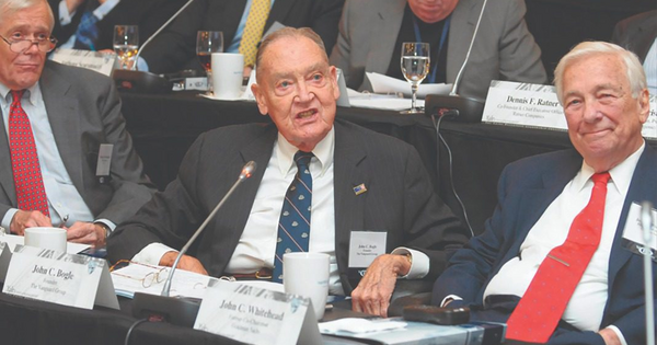 The photo a few pages up in this article shows Donaldson at a Yale CEO Summit alongside two peers, Vanguard founder Jack Bogle and John Whitehead, former chair of Goldman Sachs and a stentorian pillar of Wall Street. In honor of Donaldson’s passing, I’d like to share an excerpt from a 1999 Summit program in which he offered insights on governance and the board’s role.
