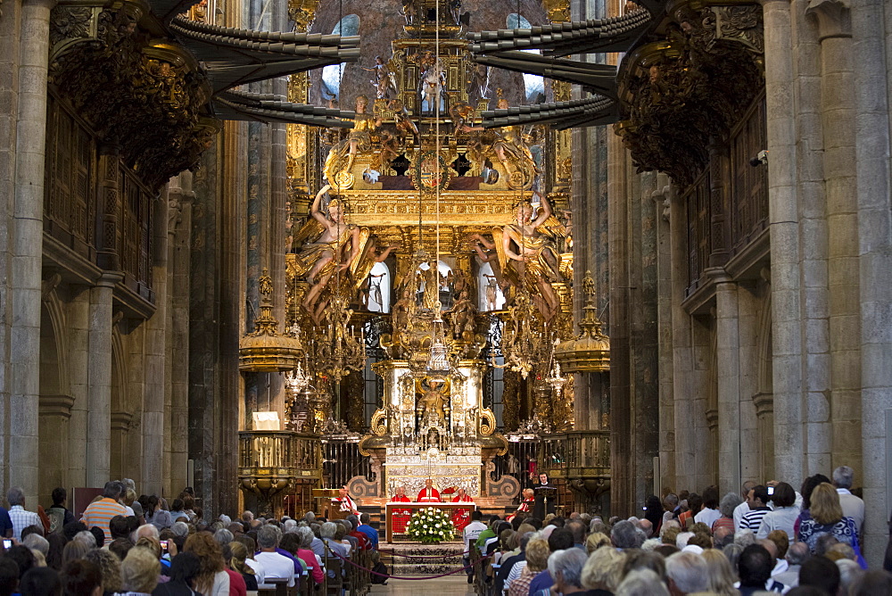 Let’s imagine the many peregrinos, coming to the end of their journey, and climbing the steps of the Cathedral of Santiago de Compostela. Watching them hurry through the portico to enter the nave, one would be tempted to grab them by the arm, stop them and hold them back in the gateway of glory, the glory of those Apostles of stone who greet and welcome the pilgrims. Something like this is the making the sign of the cross: it is a magnificent portico through which we enter gloriously into prayer.