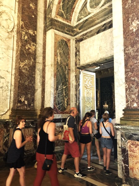 Of course, the palace and grounds are truly amazing places. Claudio made it all come alive! He was the most extraordinary storyteller weaving history, legend, drama, tragedy, politics, ego, greed, control, and romance in every room! He’d point to a painting, or a painted ceiling or the Hall of Mirrors or a bedroom and after a short story about it’s importance, he’d say, “Now remember this painting, because this story takes a turn you won’t expect!” Like school children with a captivating teacher, we couldn’t wait to hear the rest of the story!