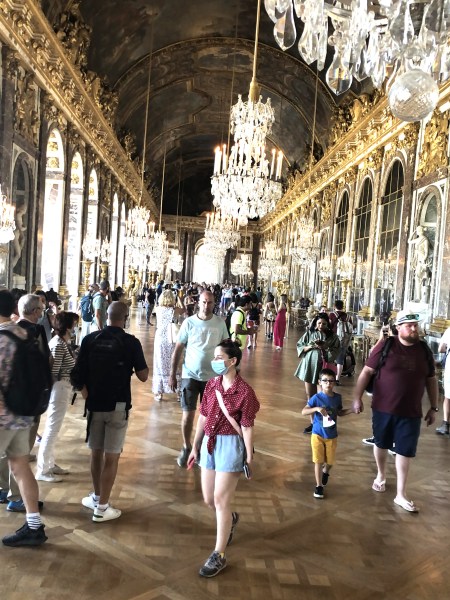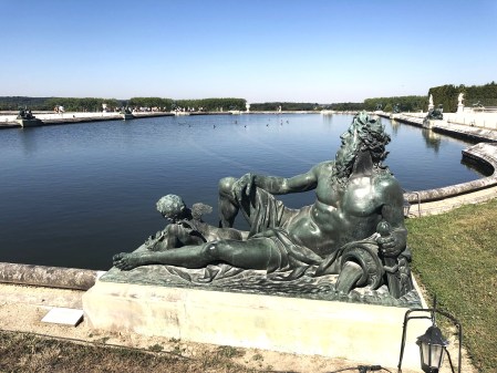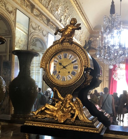 We toured 1 of the 34 gardens! Yes, 34! (They have 45 gardeners on staff.) They are trying to keep the gardens looking lush and colourful but to no avail. France, like all of Europe is parched. In fact, Versailles only runs the gorgeous, extravagant fountains on Saturdays & Sundays to save precious water. (In Paris, no fountains are in use. It’s very sad and worrisome.)